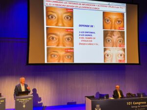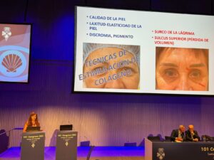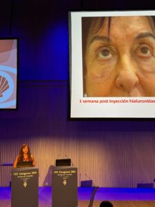 El DR Moreiras habló sobre la «Orbitopatía distiroidea: pasado, presente y futuro» y la Dra Abelenda sobre el «Abordaje estético no quirúrgico del parpado inferior»
